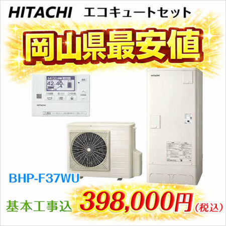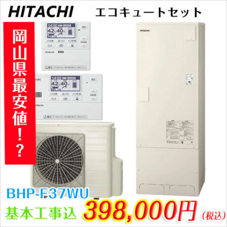 日立 エコキュート + リモコン + 脚部カバー [BHP-F37WU 370L(3~5人向け) 角型]